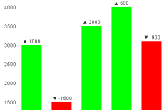 نمودار میلهای با نمایش نشانگر کاهش یا افزایش روی آن