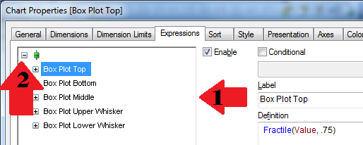 Create Combo Chart⇒Dimentions(Used Dimentions=states),Experssion(Definition=0,uncheck Bar, checked BoxPlot)